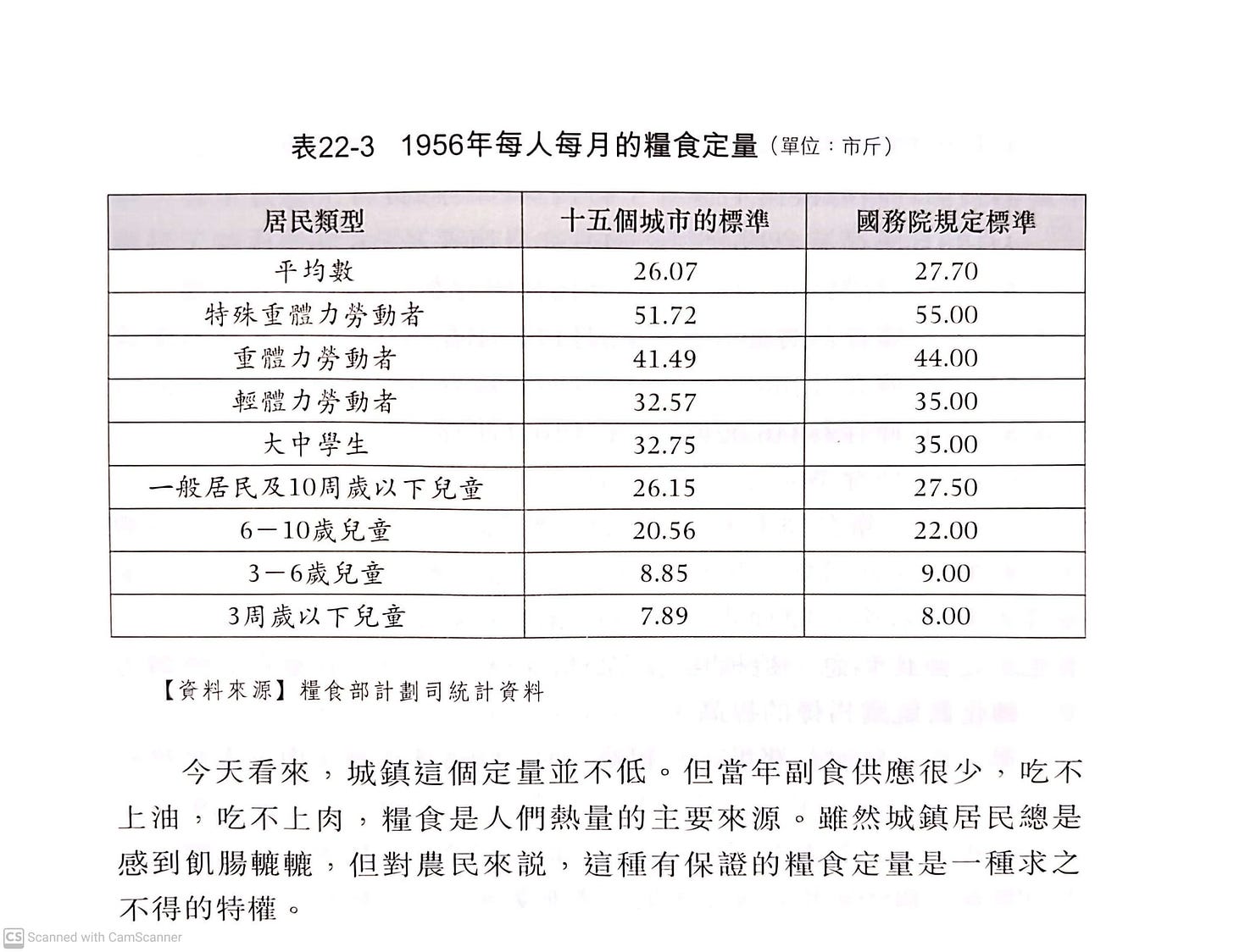 >p914 1958年以後的大饑荒,是在糧食統購統銷的制度背景下出現的。統購統銷,消滅了糧食市場,扼殺了使糧食增加產量的市場動力;統購統銷,剝奪了農民取得食物的權利,每一餐飯都仰仗政府供應。集體經濟,又剝奪了農民通過個人的加倍勞動,增加食物生產的權利。統購統銷和集體經濟又是計劃經濟體制的必然。從這個意義上說,大饑荒和計劃經濟制度密切相關。