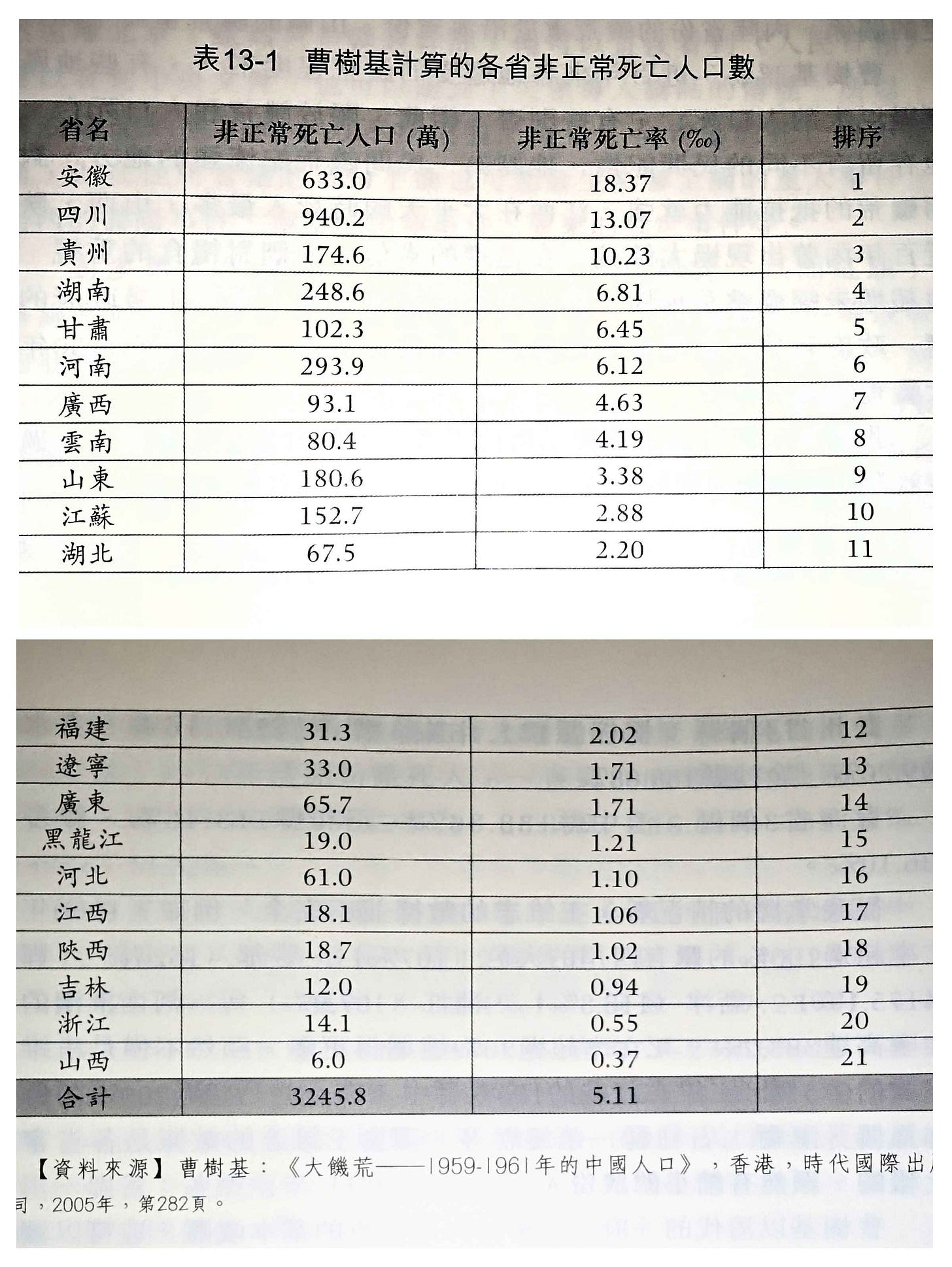 但是,各地饑荒輕重程度有所不同,非正常死亡率因地而異。